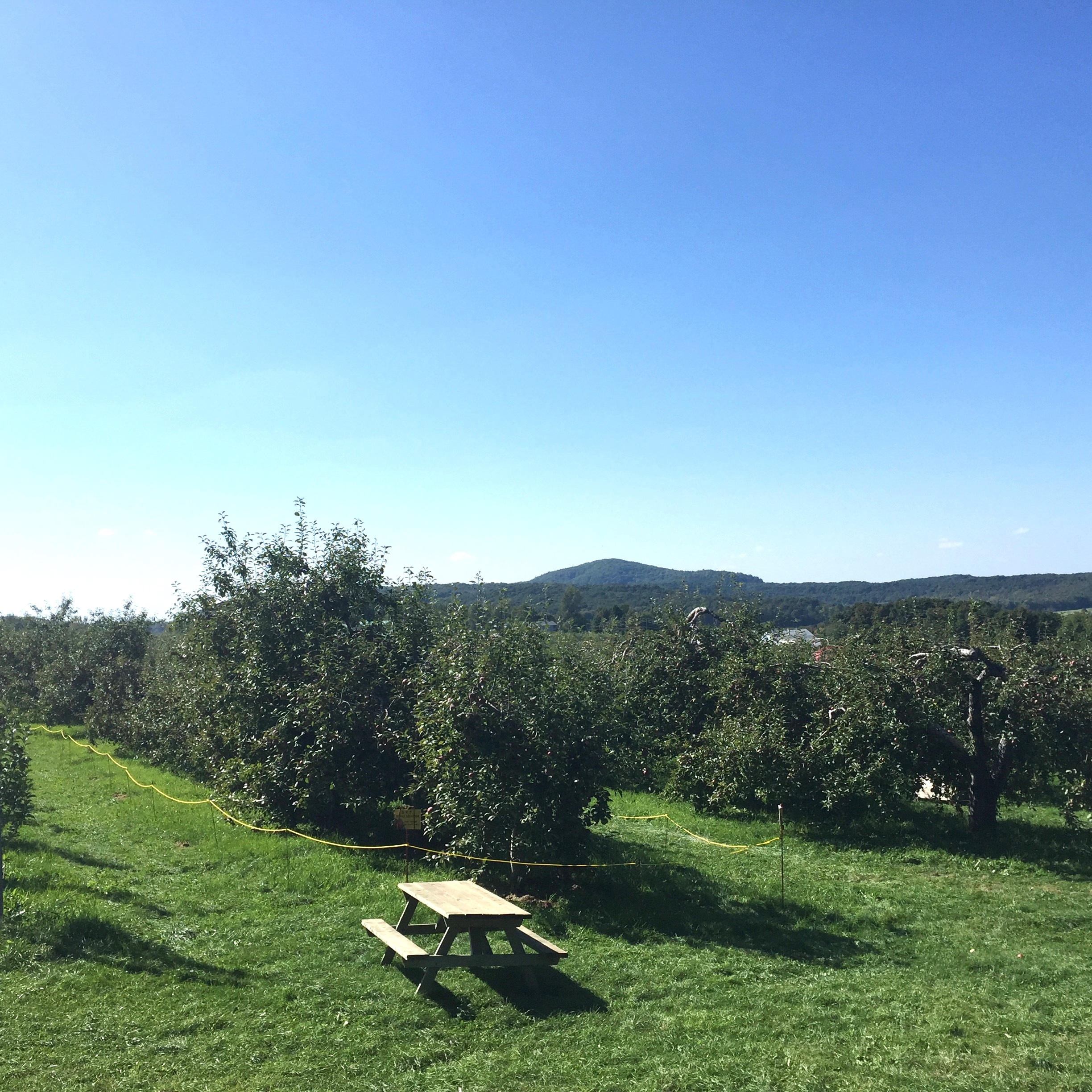 La vue au belvédère du site était simplement paisible et adorable avec la montagne qui plombait sur les pommiers. Le tour peut se faire à pied ou en petit tracteur, mais vue la foule nous avons préféré marcher. En même temps, ça fait un bien fou de faire un peu d’exercice (surtout pour moi après toute cette route). Après notre balade, nous avons légèrement regretté les poignées qu’ils offraient à l’entrée : courte branche de bois auxquelles tu peux y mettre les poignées du sac pour la cueillette car sans elle, les cordes du sac te massacrent les mains et les bras, bref.