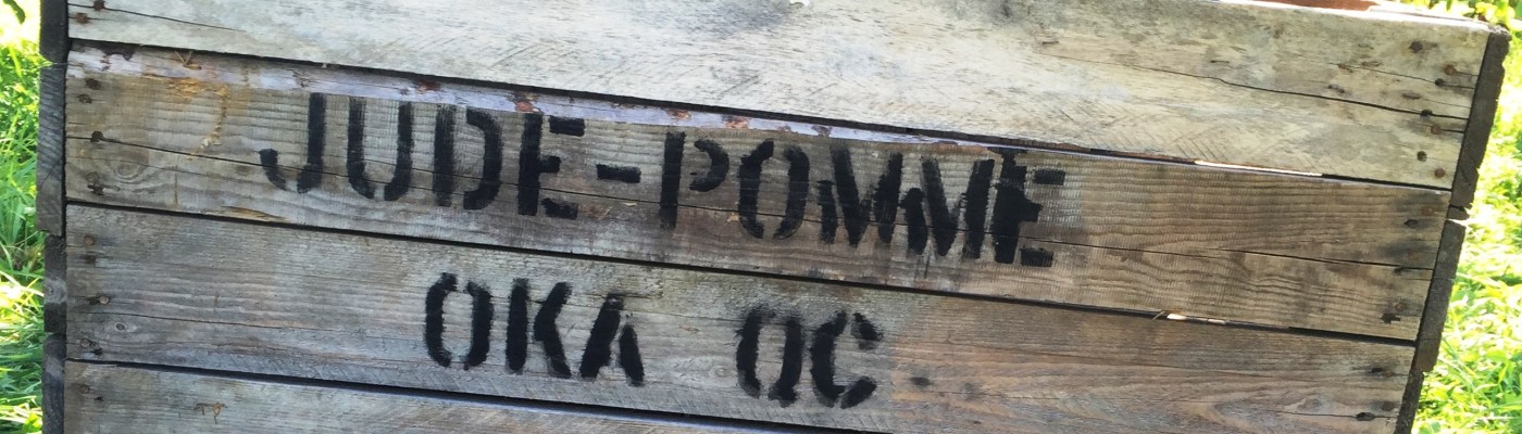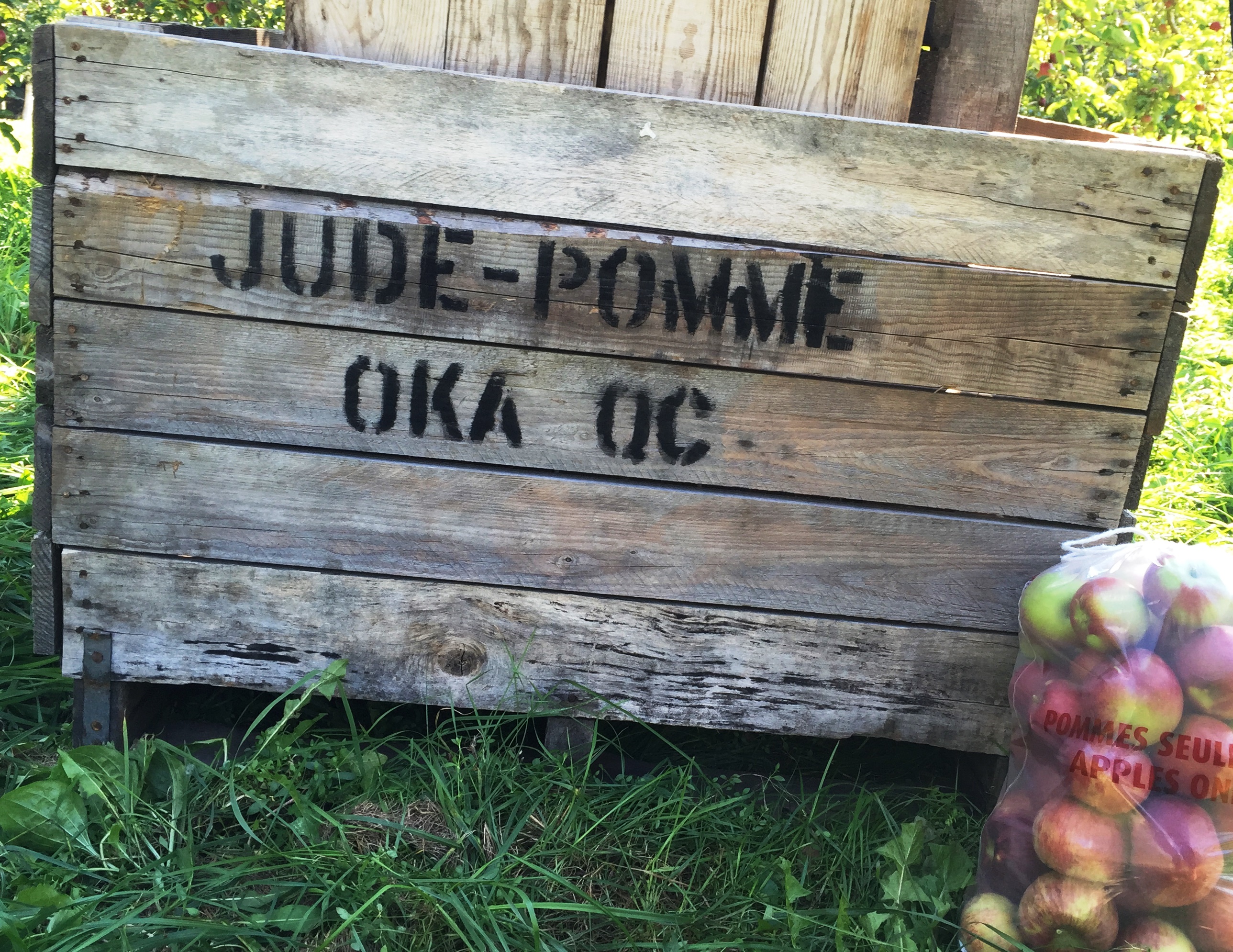 J’ai manqué à la tradition d’aller chez le Gros Pierre à Compton pour la saison des pommes cette année (je me reprendrai peut-être plus tard avant l’Halloween). Mon amie, Catherine (avec un H) vient de Deux-Montagnes et elle part pour habiter la France sous peu alors je n’avais d’autres choix que de faire la route pour la rejoindre. C’est au Jude-Pomme (j’adore le jeu de mot!) que nous nous sommes arrêtées pour une journée savoureuse. Il faisait 2 degré Celsius quand j’ai quitté Sherbrooke au matin et là, il devait en faire minimum 25… je voulais mourir avec mon accoutrement. J’avais ma nouvelle chemise en plaid que toute fidèle cueilleuse se doit de porter et une chance aussi, des trous pour aérer mes genoux haha.