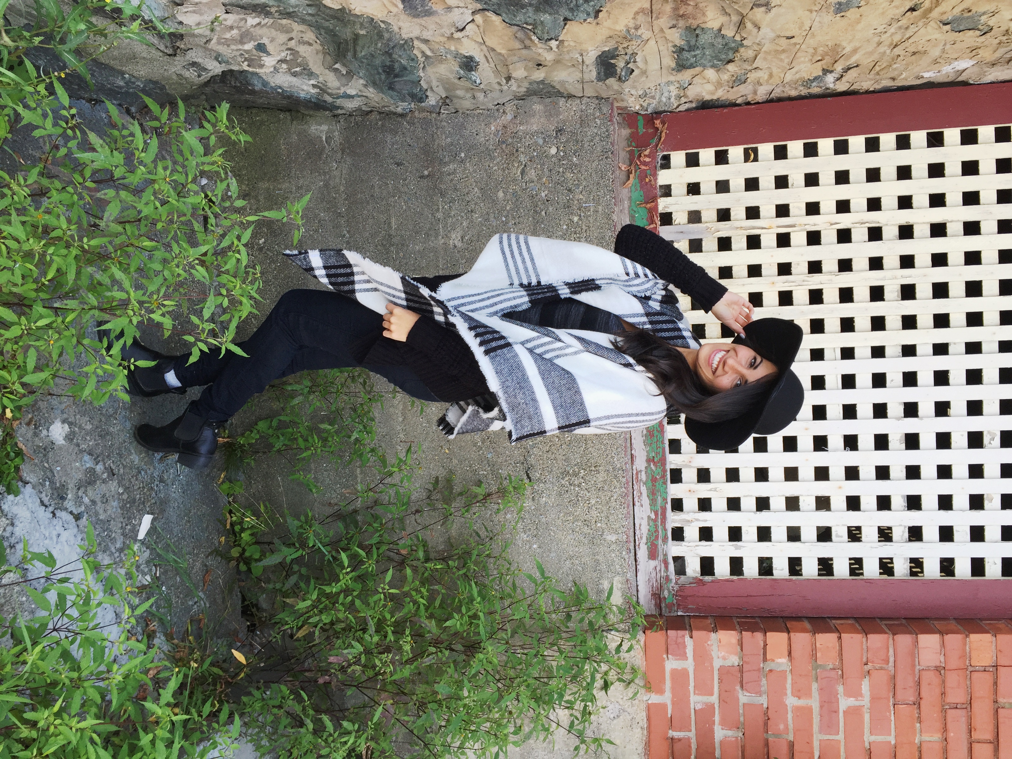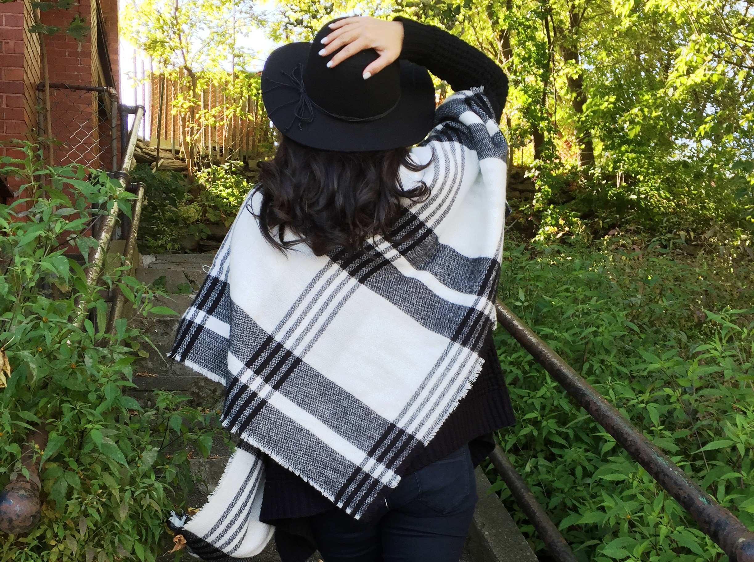 Pour fuir ces grandes tâches ménagères et mon homme qui prend tout l’espace car il se doit d’étudier pour ses intra… j’ai décidé d’acquérir quelques nouveautés comme deux foulards et un chapeau melon. Puis, j’ai ressortis les hauts à manches longues de l’année dernière et j’ai agencé le tout pour un look plutôt neutre mais combien confortable. J’y suis allée dans un ensemble noir de la tête aux pieds, avec des bas gris (que j’aurais pu laisser par-dessus mes pantalons d’ailleurs) et un foulard volumineux blanc à carreaux pour un peu d’éclat.