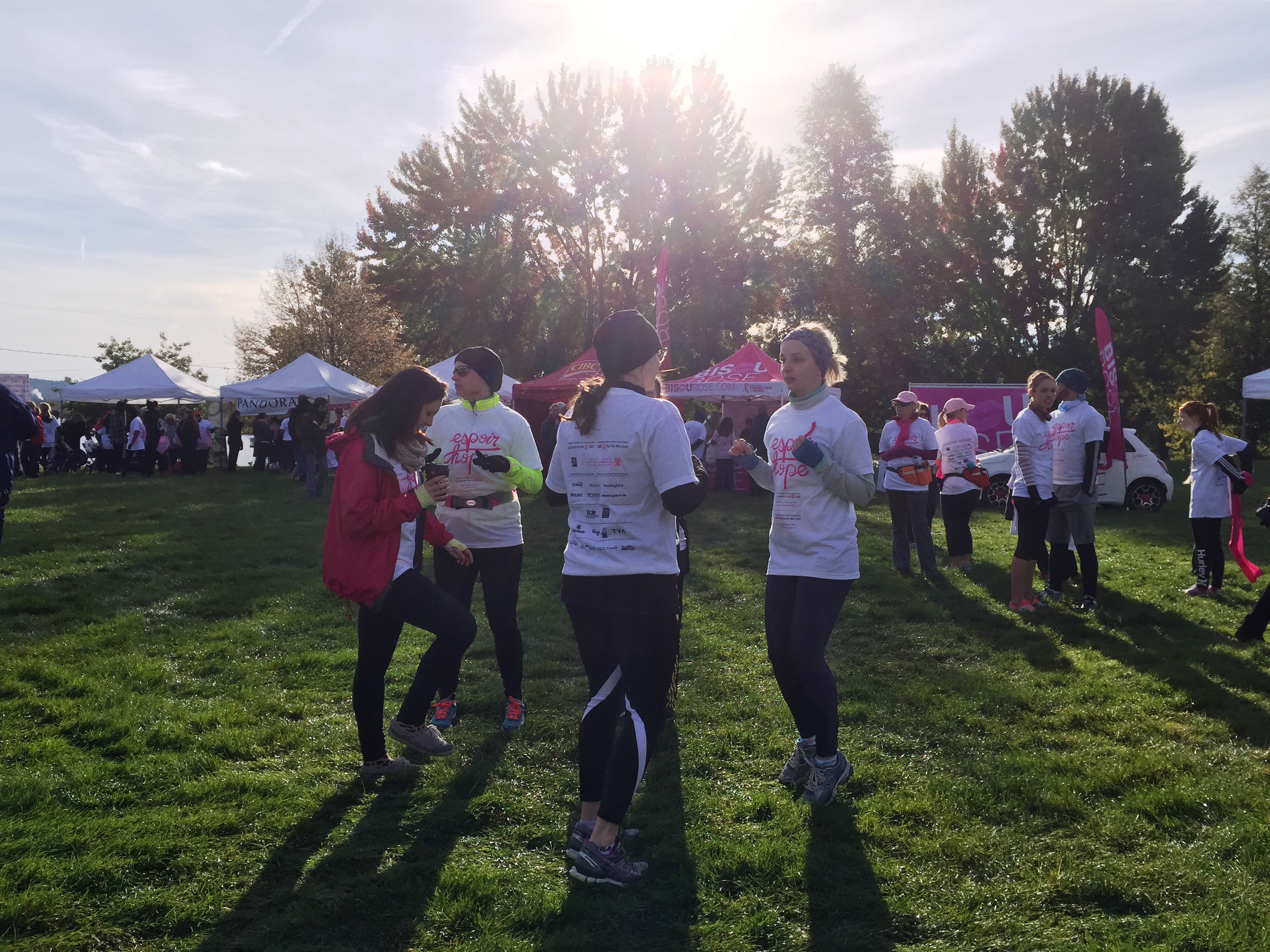 Jusqu’à la dernière minute, j’ai failli me désister… je ne m’étais toujours pas inscrite et j’avais très mal dormi durant la nuit. L’activité à l’horaire était la Course à la vie CIBC, une cause que j’ai à cœur puisque ma tante est décédée suite à un cancer du sein en 2013. Un petit 5km qui réunissait toutes les quatre meilleures amies du secondaire.