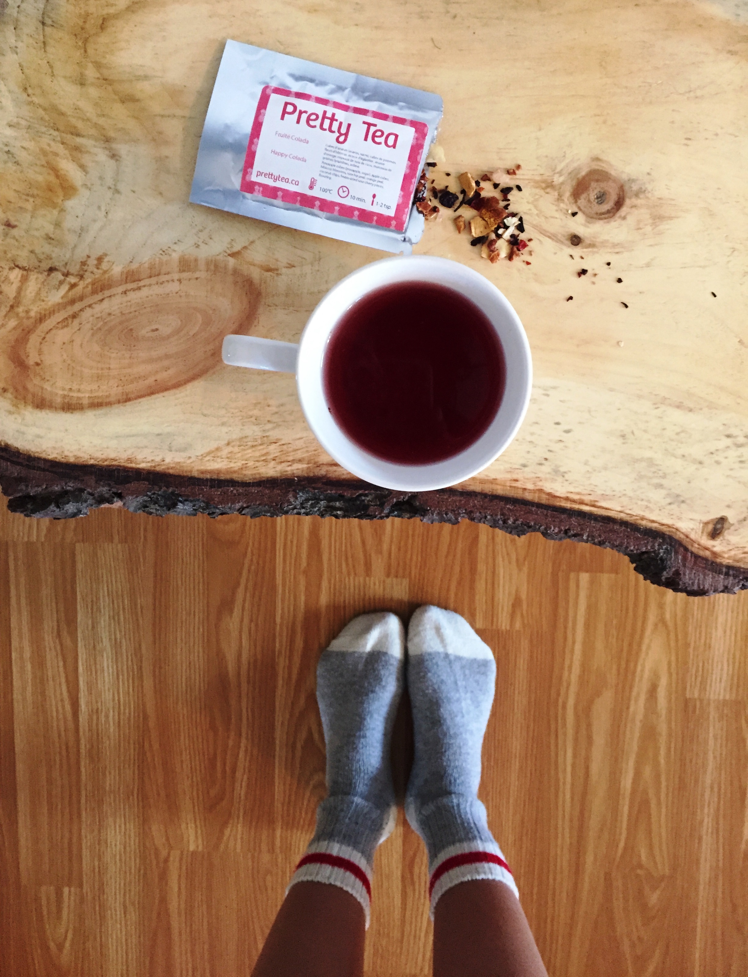 Pour récompenser nos efforts et se réchauffer – c’est bien beau courir, quand on arrête le froid s’agrippe aussitôt à nos petits corps en sueur – nous sommes parties à l’EggsFruit se payer des œufs bénédictines. Au diable le régime! J’ai poursuivi ma journée seule à la maison, j’ai pris une bonne douche bouillante, j’ai préparé un thé incroyable (Fruité Colada, offert par Pretty Tea dans ma retraite avec Bulles et Botillons) et j’en ai profité pour me faire les ongles d’orteils qui commençaient à faire pitié. Une journée complète pour moi, juste avec moi parce que ça fait du bien de se gâter et prendre soin de soi de temps en temps.