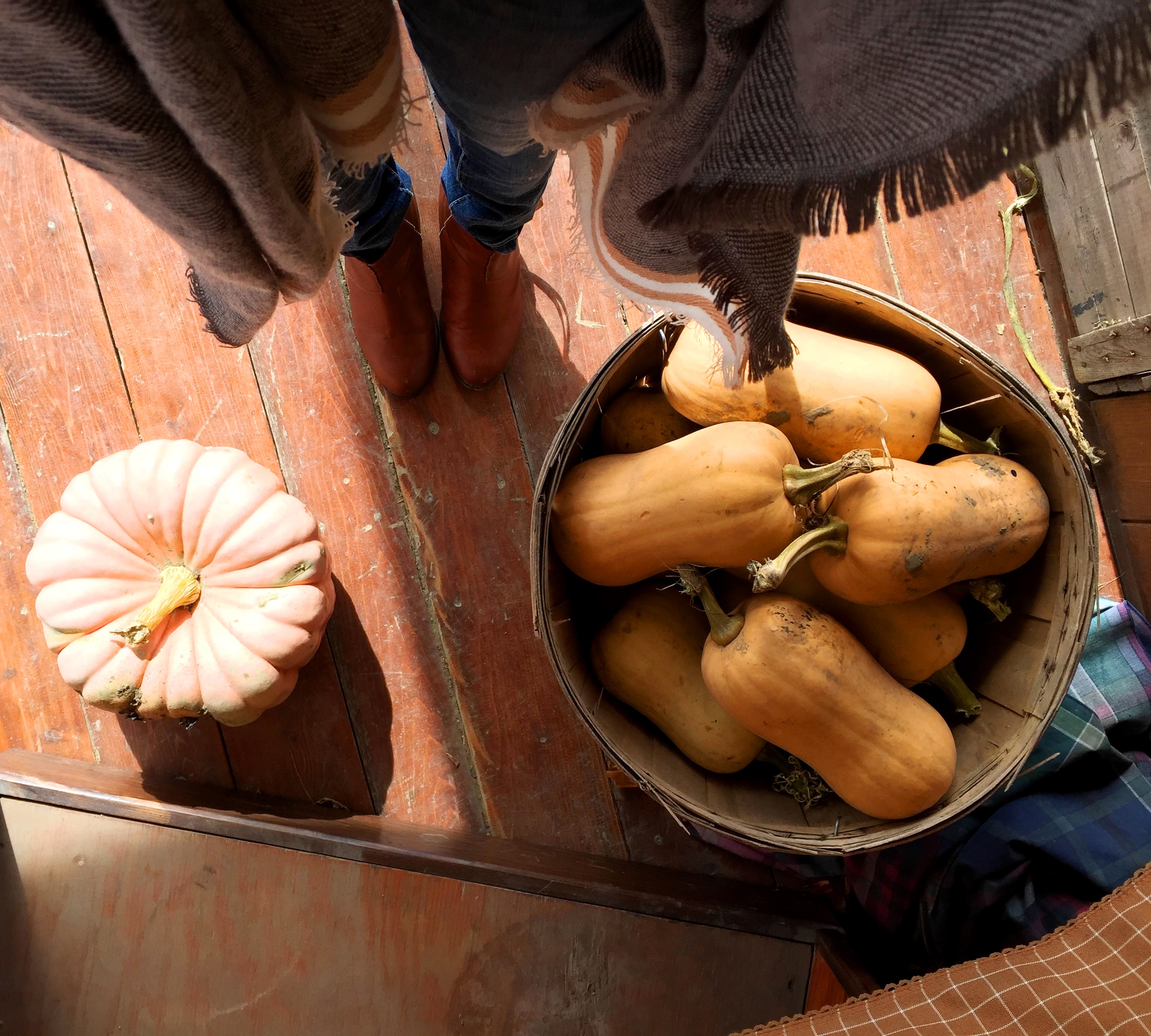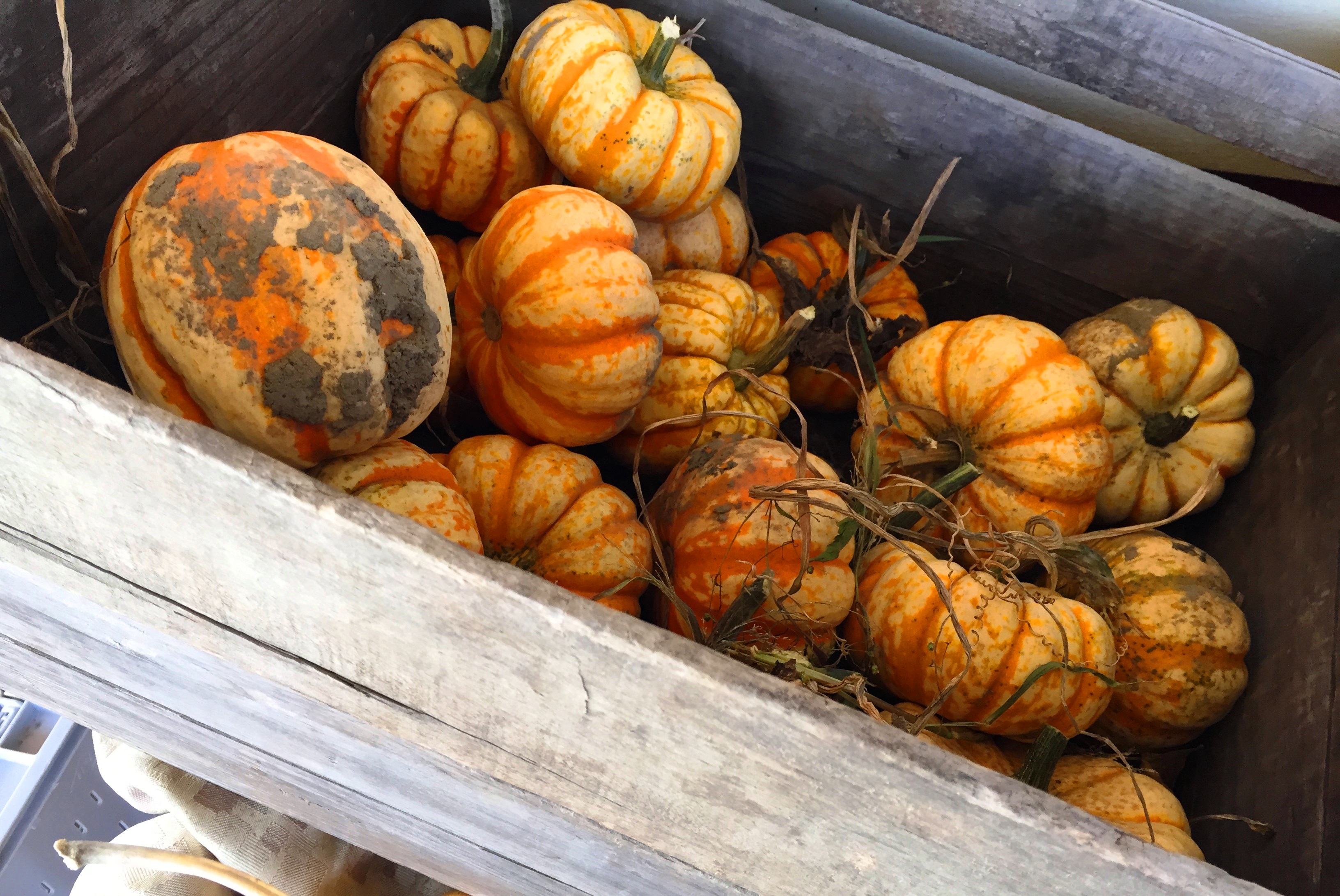 Je voulais absolument aller m’en cueillir une, mais j’ai flanché quand je me suis arrêtée au Marché de la ferme Beaulieu. Magnifique endroit au milieu des champs, à quelques minutes de Sherbrooke et en plus, le personnel est tellement accueillant. Yolande a quitté son comptoir voyant que j’étais un peu perdue et en a profité pour me faire découvrir son inventaire de fruits de saison. Il y en avait partout : des noirs, des vert pâle, des rayés, des roses, des ovales, des gigantesques mais aucun était blanc comme je voulais. La dame m’a tentée avec celles qu’elle nomma Citrouille de Cendrillon, ces dernières avaient exactement la forme du carrosse de la Princesse qui devait la revenir du bal avant minuit. Leur couleur rose pâle et leur forme plutôt incongrue ont su me charmer malgré leur taille plus grande que j’aurais espéré. J’ai demandé à refaire le tour, seule cette fois-ci. Je me suis permise de les examiner une après l’autre puis je suis tombée sur la bonne. Le hic est qu’elle faisait partie de l’arrangement de l’entrée. Après avoir eu la permission, j’avais les deux pieds dans le foin, les mains dans la terre et j’avais enfin la plus petite des citrouilles roses de la ferme en ma possession.
