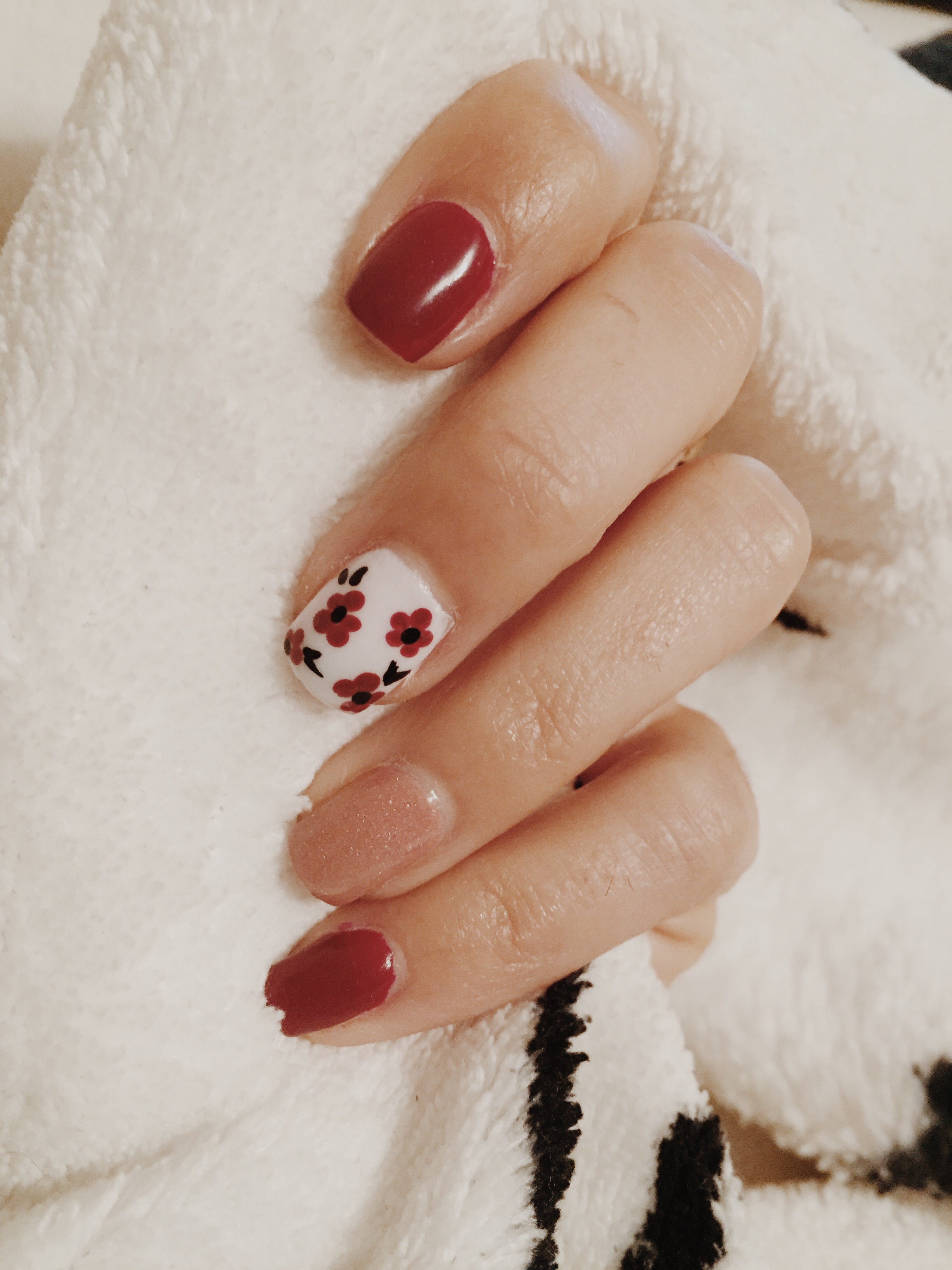 Cette semaine, je ne sais pas ce qui s’est passé dans ma tête, mais j’y suis allée pour un design plus fille que jamais. J’ai l’habitude d’y aller dans les teintes de bleu, gris, blanc ou noir, rien d’extravagant. Et là, Pinterest a influencé ma décision puis, j’ai opté pour du rouge, presque rose et des fleurs ! J’ai passé par-dessus mon orgueil et j’ai immortalisé le résultat que voici.