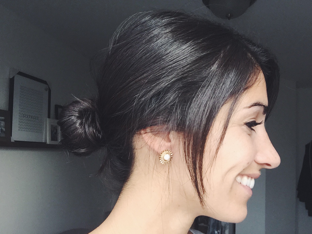 Je suis plutôt du genre à laisser ma crinière lousse qu’elle soit frisée ou raidit par le fer, sauf quand le temps me manque et que je la remonte en chignon. Celui-ci peut être fait en deux temps trois mouvements, requiert très peu d’accessoires pour le tenir en place et donne malgré tout, un résultat d’un chic remarquable. Il est possible de le porter tous les jours de la semaine sans qu’il ne ressemble aux précédents tellement il y a de manière de le coiffer.
