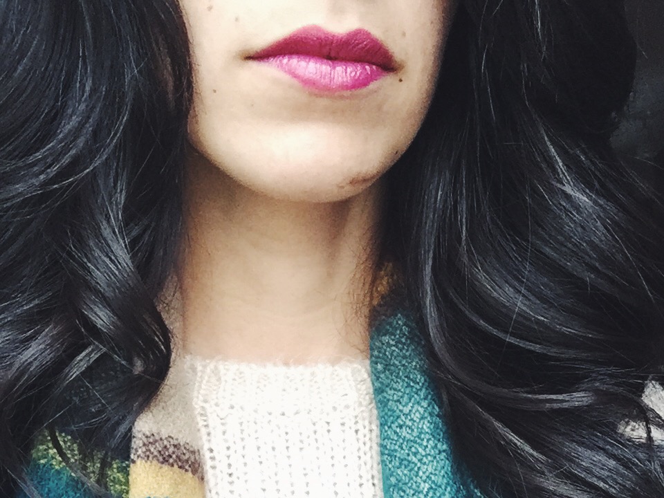Preuve qu’il faut piler sur ses principes : voici des selfies de moi dont une où je ne souris pas (-_-) pour te montrer mon nouveau rouge à lèvres tellement fashion et automnal dont je suis en amour. ❤