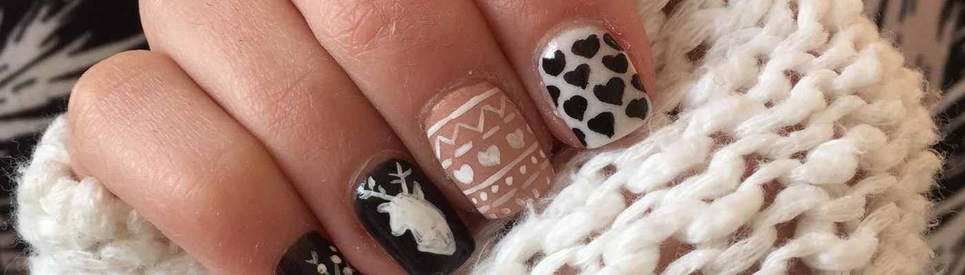 La période des Fêtes est le moment tant attendu pour avoir des ongles aux plus belles allures ! Le rouge est souvent à l’honneur et probablement que j’en demanderai la mi-décembre venue, mais là, je feelais plus «chalet». J’avais le goût de m’inspirer de ce lieu de repos, de fête et de retrouvailles pour en déguiser le bout de mes dix doigts. Qui dit chalet, dit tête de chevreuil accroché au-dessus du foyer, bas de laine, des milliers de flocons de neige dans le ciel, beaucoup d’amour et des cadeaux. Évidemment, tous ces éléments se retrouvent dessinés sur mes ongles avec des couleurs douces dont le blanc, le noir et le rose pâle (oui oui, moi avec du rose encore!)