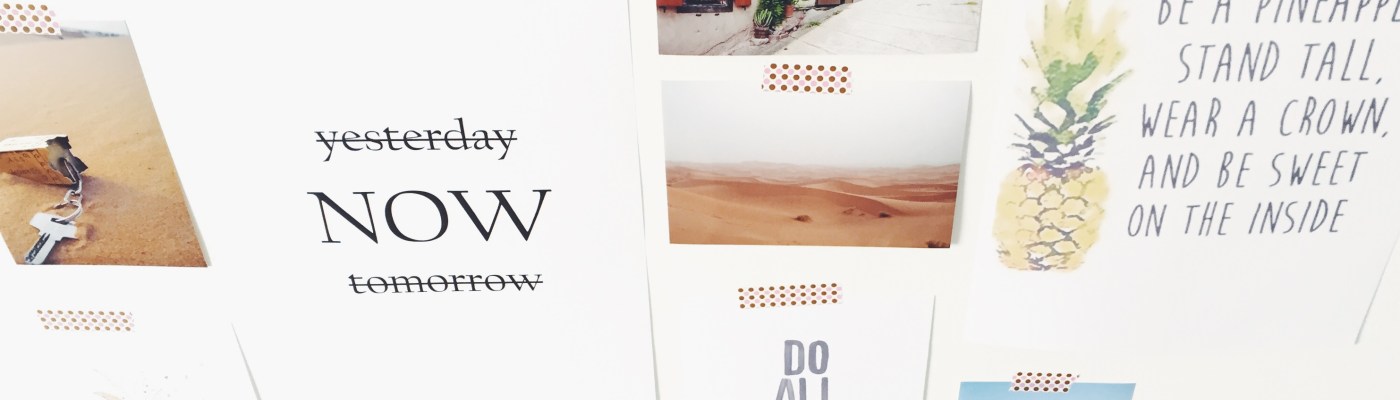 Je naviguais sur Pinterest à la recherche des meilleures quotes de motivation et j’ai trouvé bien plus intéressant : des images à imprimer, belles et simples. Des paroles qui me disent que c’est le temps d’agir, tout en se tenant droite avec sa couronne sur la tête et qu’il faut le faire avec amour. Mon bureau est aussi l’endroit où j’aime écrire mes aventures alors quoi de mieux qu’accompagner ces feuilles de photos de voyage qui me rappellent l’Alsace, l’Angleterre, la Grèce, l’Italie et le Maroc. Il suffit de les fixer au mur de façon aléatoire avec du ruban aux motifs doré et rose.