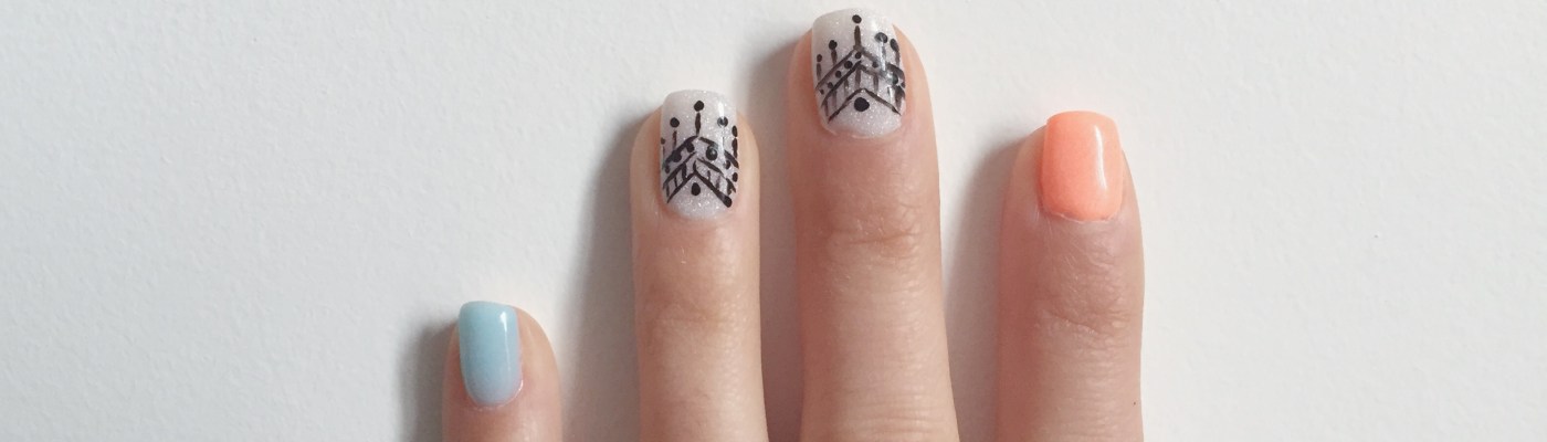 En attendant le retour du ciel bleu, j’ai choisi de mettre sa couleur sur mes ongles aux côtés d’un orange qui rappellent les plus beaux couchers de soleil d’une chaude soirée d’été. De plus, son nom est Paradise Sunset, tu comprendras que j’suis aussitôt tombée sous le charme. Il y a aussi mon amour inconditionnel du blanc qui m’a (encore) influencé à équilibrer le tout avec sa teinte parfaite que j’ai fait décorer de motifs Indie, les plus stylés ce mois-ci. Évidemment, je suis restée fidèle à Cynthia du Salon Colibri à Sherbrooke pour qu’elle fasse de mes ongles une petite merveille que je porterai fièrement pendant les trois prochaines semaines.