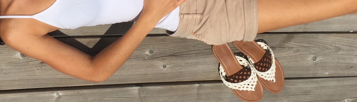 Pour un style très minimaliste, j’ai choisi une simple camisole blanche à bretelles et un short beige. Les deux sont très confortables et passe-partout. J’ai ajouté des accents de bois grâce aux bijoux pour rester dans la zenitude du décor «detox».
