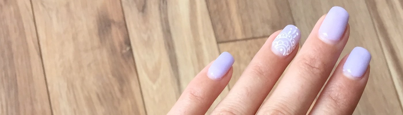 Les lilas fleurissent au début de l’été et disparaissent pratiquement aussitôt, ne laissant que leur délicieux parfum flotter dans les airs. Heureusement, leur charmante couleur reste un must pour l’ensemble de la période estivale. À la fois douce et attirante, c’est elle que j’ai choisi pour mettre sur mes ongles de fin juillet. Cette dernière fait ressortir notre bronzage dorée tout en se faisant discrète au bureau. De plus, si vous êtes comme moi et que votre garde-robe se résume aux couleurs pastel avec beaucoup de blanc, ce mauve lilas ira avec tout. Une couleur unie mérite bien quelques accents pour se démarquer, j’ai donc choisi des motifs de fleur blanc inspiré de l’art du henné. Un combo des plus exquis pour les vacances de la construction qui débute la semaine prochaine.