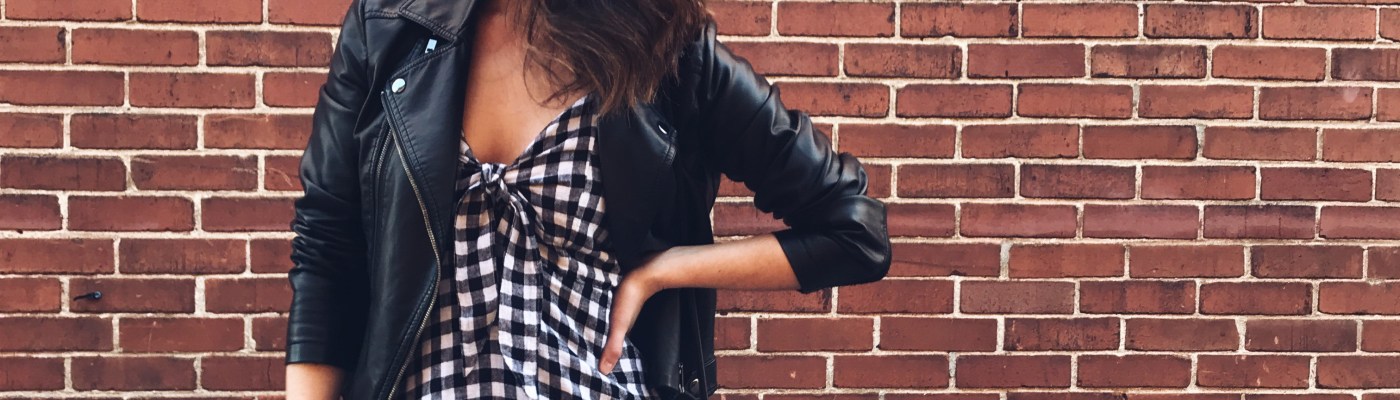 Le gingham est le nom anglophone que l’on donne à un tissu dont l’imprimé est formé de petits carreaux deux couleurs. Souvent imaginé en rouge et blanc lorsqu’il s’agit d’une nappe de pique-nique et plus souvent vu en noir et blanc dans la mode d’aujourd’hui. En français, on lui donne le nom de «vichy»… tout ça pour dire que ce tissu toilé de coton est plus populaire que jamais! On le retrouve en pantalons, en hauts avec ou sans manche, sur des bas et comme je vous le présente à l’instant; sous forme de robe.