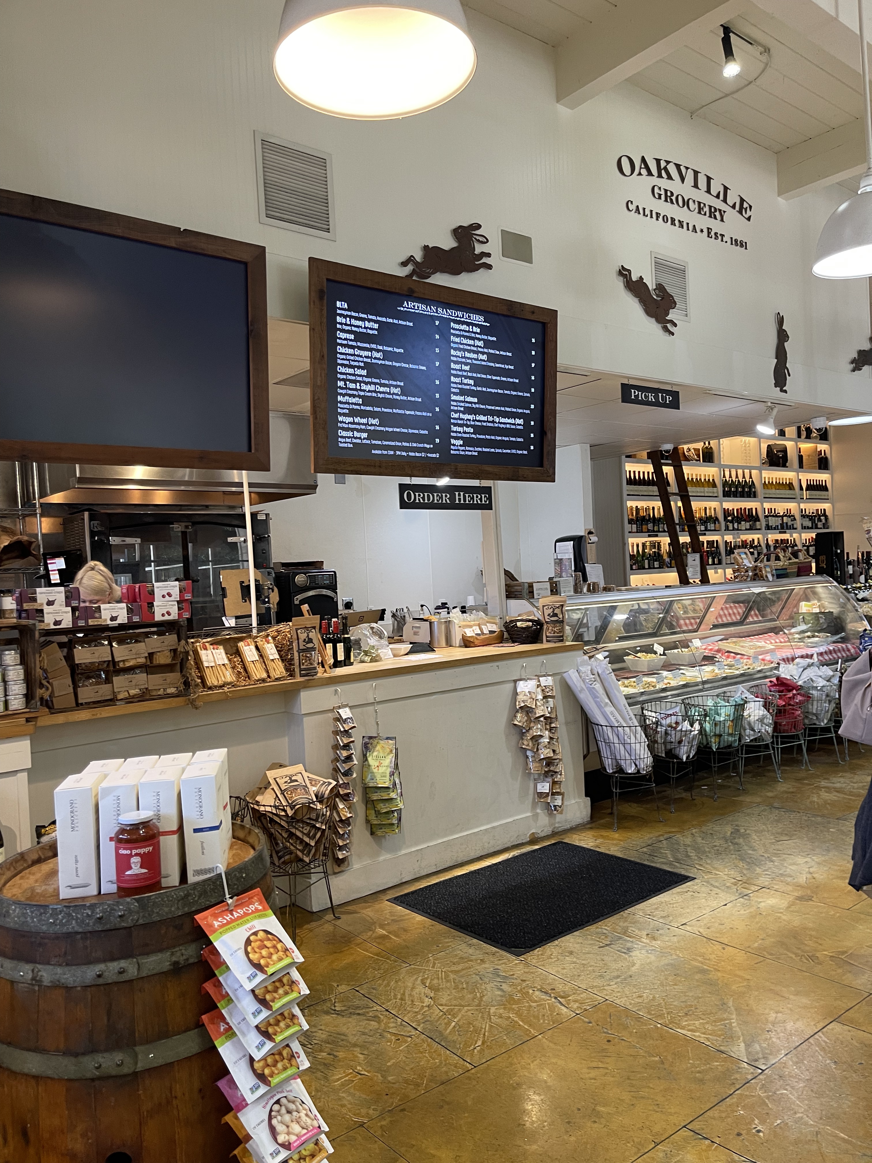 Première escale pour casser la croûte avant notre premier vignoble – où on était loin de se douter qu’un goûté nous attendait – nous avons découvert la «Oakville Grocery». Une jolie terrasse avec foyer au bois nous a accueilli. En ouvrant les portes, on plonge dans un petit marché local, avec une belle sélection de vin, un comptoir à fromages et charcuteries, un autre à salades et sandwichs, en plus d’une panoplie de petits souvenirs et plaisir gustatifs.